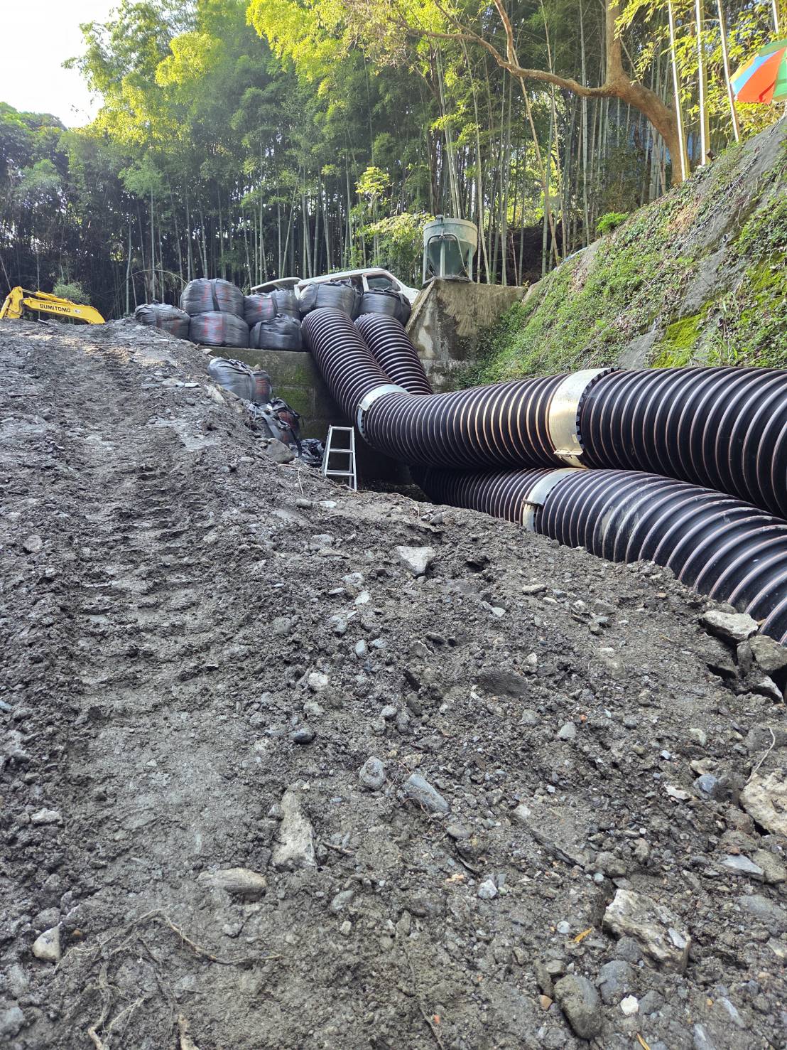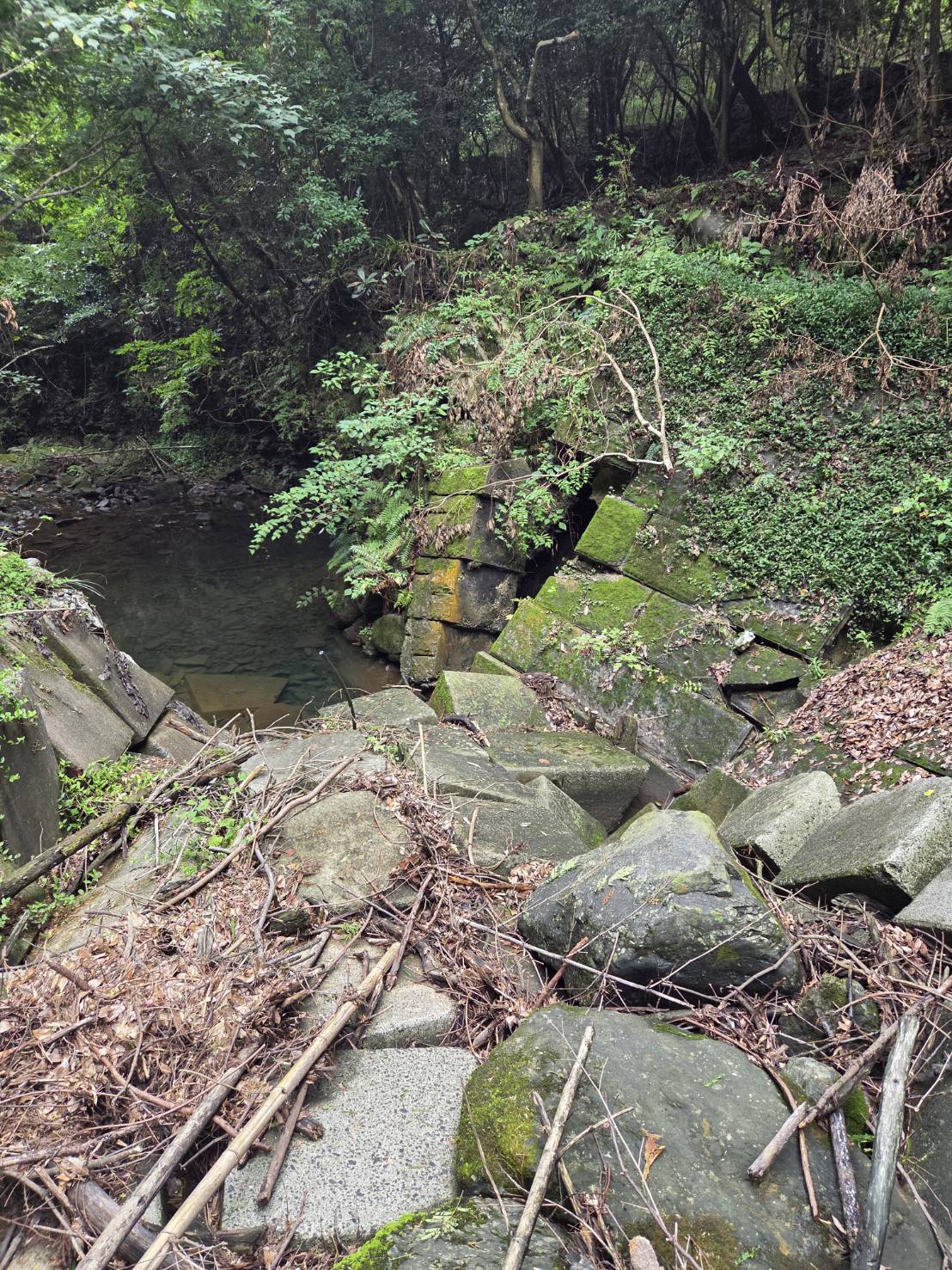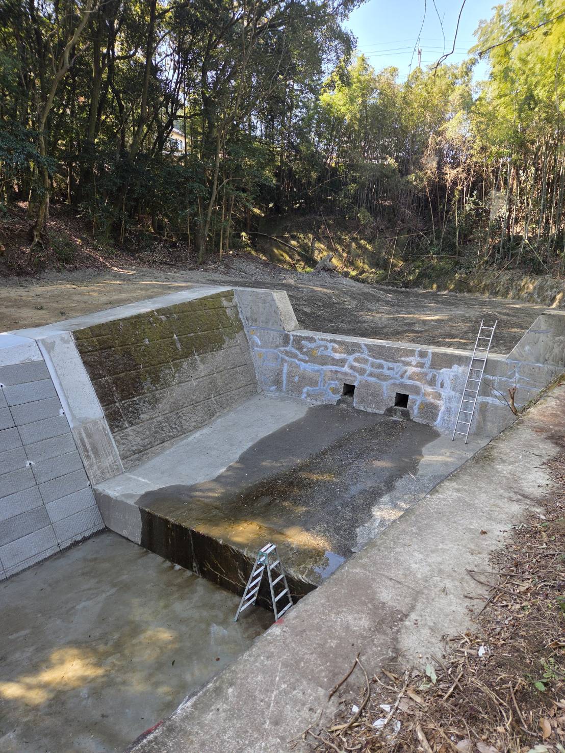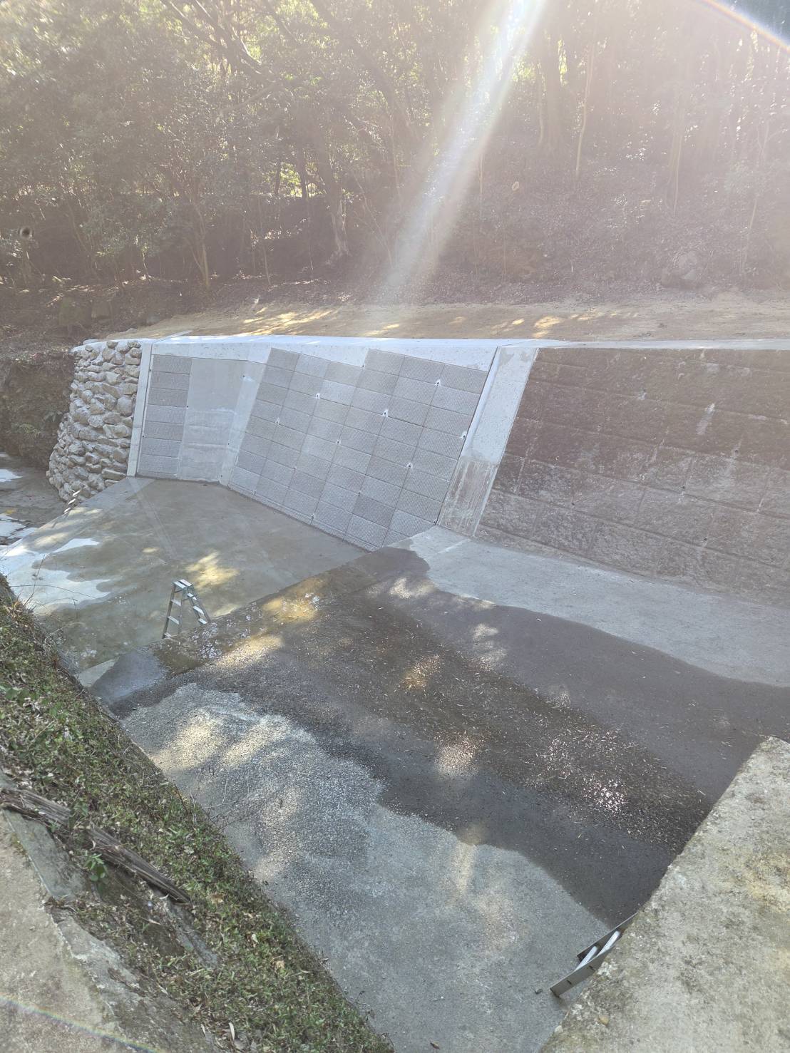 長年にわたる自然災害の影響により、河川沿いの壁が崩れている状態が確認されたため、復旧工事を行いました。